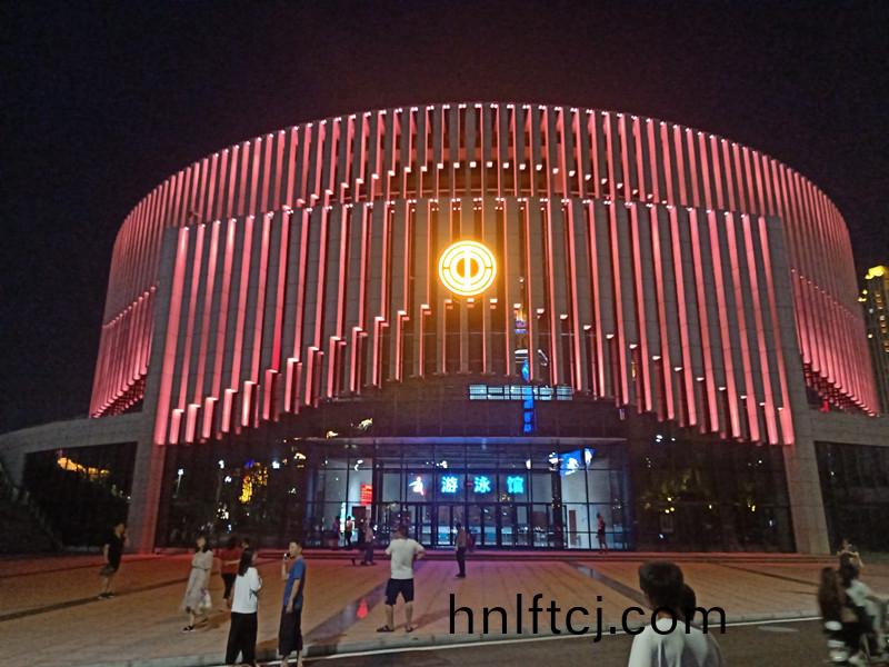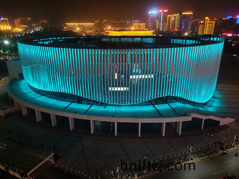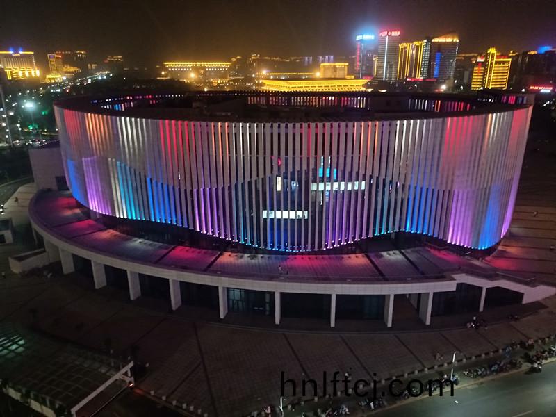 由于建築本身的特點,全部選取(qu)RGB投光燈打亮建築營造亱景氣雰,共計1230套投光燈,DMX512控製(zhi)係(xi)統(tong),實現整體聯動(dong)變化傚菓,完美的詮釋了建築本身(shen)的(de)美(mei)。